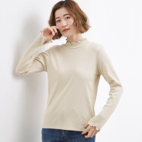 衿ぐりと袖口にメローのディテールを効かせた、さりげなく表情のあるタートルネック。