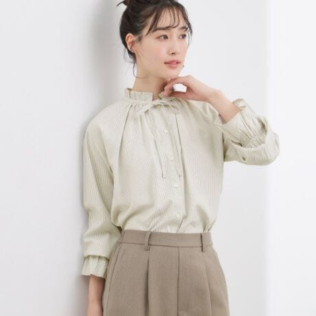 上品なフリルとリボンでシンプルに華やぐブラウス