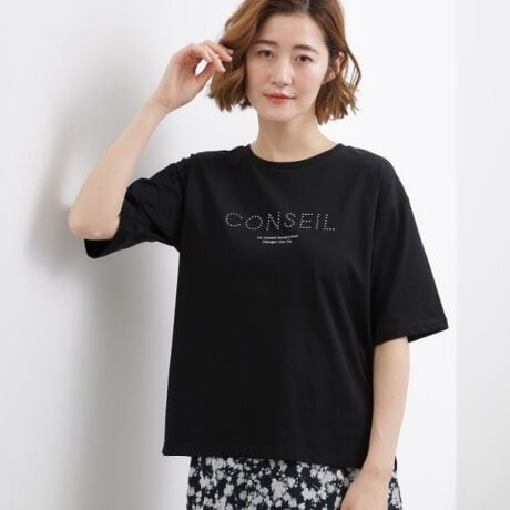 ドロップショルダーで二の腕をカバーしつつ、ほどよくゆったりとした5分袖ロゴTシャツ。