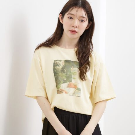 ドロップショルダーで二の腕をカバーしつつ、ほどよくゆったりとした5分袖ロゴTシャツ。