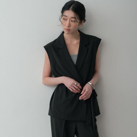 テーラーカラーでマニッシュに引き寄せたジレは、軽快なデザインが魅力。