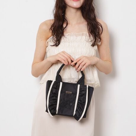 上品でキュートなデザインが魅力のフリル2WAYトートバッグ。