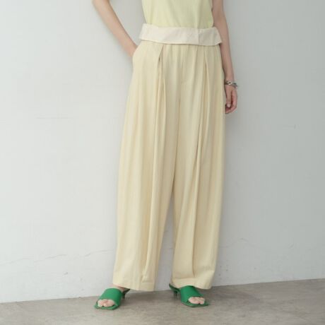 タックデザインが脚のラインを美しく見せ、程よいボリューム感でスタイリングにメリハリを与えます。