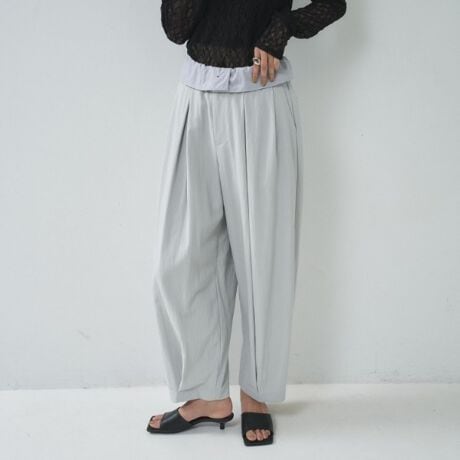 タックデザインが脚のラインを美しく見せ、程よいボリューム感でスタイリングにメリハリを与えます。