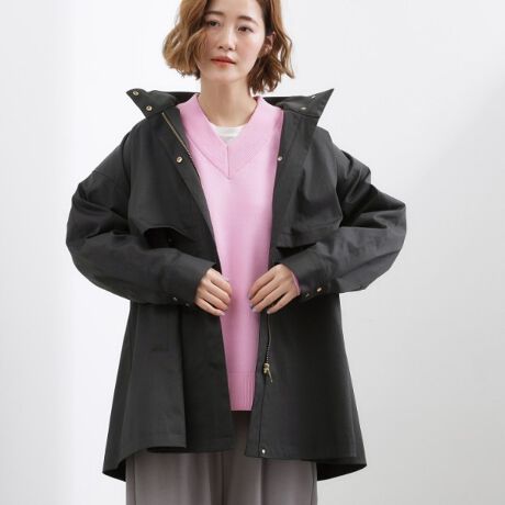 スタンドネックデザインがクリーンで洗練された印象のテントラインコートです。