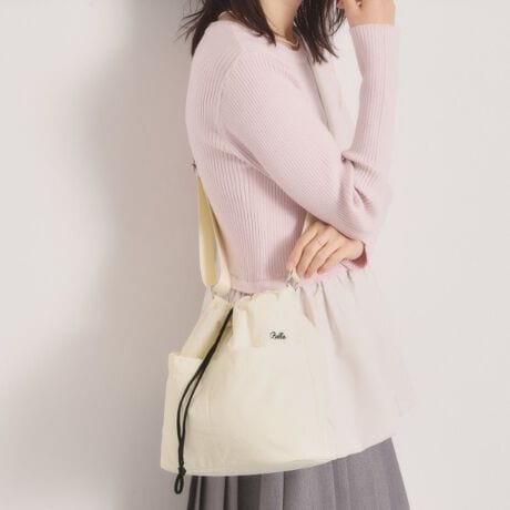 薄手で軽い素材感がポイントの巾着型ショルダーバッグです。