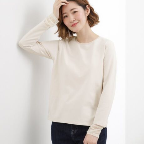 ニットやスウェット、カーディガンのインナーとして重ねることで、袖口のシアーがアクセントに。