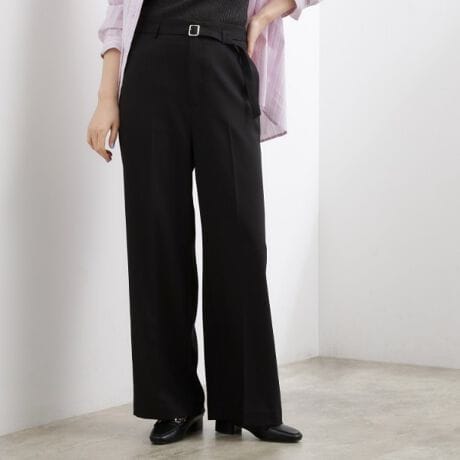 ウエストに切り替えを入れない、続き仕様のウエストデザインが特徴のワイドパンツです。
