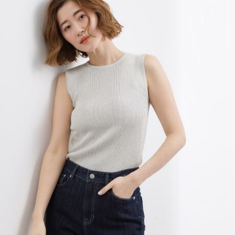 ラメが程よく施されたリブ編みのニットタンクトップ。
