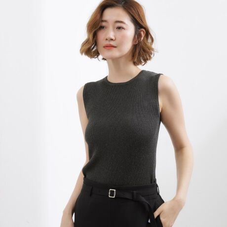 ラメが程よく施されたリブ編みのニットタンクトップ。