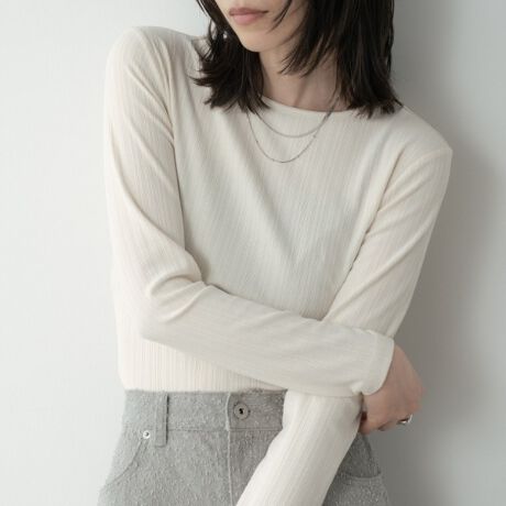 リブ素材が美しいラインを描く長袖Tシャツ。