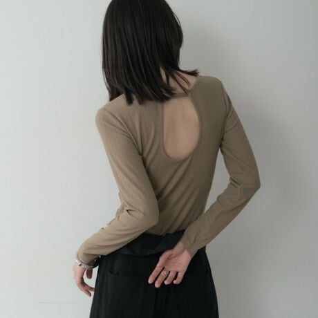 リブ素材が美しいラインを描く長袖Tシャツ。