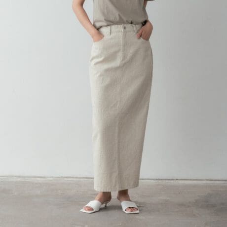 特徴的なテクスチャーを持つスカートは、シンプルながらも個性を際立たせる一品。