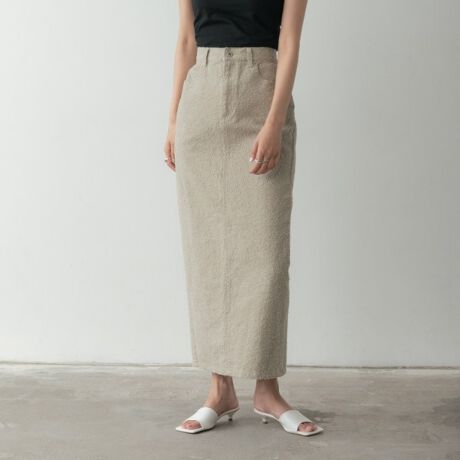 特徴的なテクスチャーを持つスカートは、シンプルながらも個性を際立たせる一品。