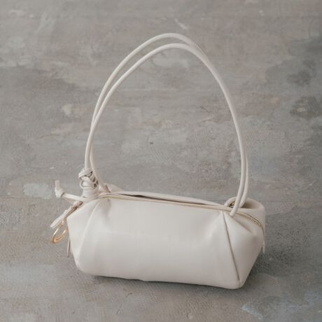 長めのハンドルが抜け感を演出するハンドバッグ。