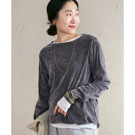 秋に人気だったシアーベロア生地がより春っぽく軽い生地を使用した長袖タイプのプルオーバーです。