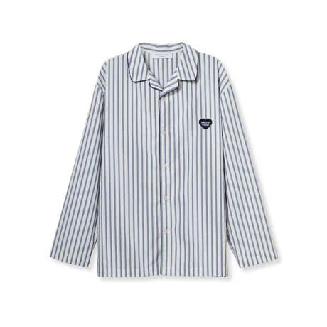 <b>【ハート刺繍が効いた爽やかなストライプシャツ】</b>