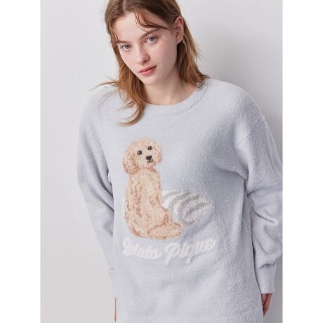 ビーグルにラブラドゥードル、ウェスティ。おうちの中で楽しく遊ぶワンちゃんたちの姿をテーマにした、UNISEXでお楽しみいただけるシリーズです。さらふわの‘エアリーモコ’を使用した3色のプルオーバーに、表情豊かなワンちゃんたちをジャガードで表現。gelato piqueらしいボーダーの枕と、ロゴを配色で描いているのがポイントです。色はビーグル柄のオフホワイト、ラブラドゥードル柄のブルー、ウェスティ柄のネイビーの全3色。同シリーズのボーダーロングパンツや、DOG柄プリントのアイテムと合わせてお楽しみください。カップルでペア・コーディネートもおすすめです。