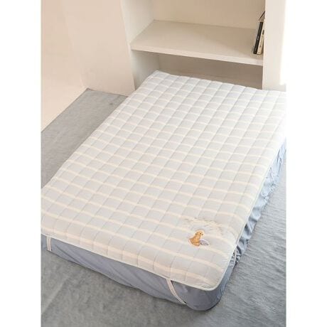 ビーグルにラブラドゥードル、ウェスティ。おうちの中で楽しく遊ぶワンちゃんたちの姿をテーマにした、UNISEXでお楽しみいただける寝具シリーズです。3種類のワンちゃんのプリントワッペンとロゴ刺繍をあしらった、爽やかなボーダー柄のセミダブルサイズ敷きパッド。性別を問わないUNISEXなデザインで、DOGの絵柄に添えたアーチロゴの刺繍もポイントです。抗菌防臭機能を備えた中綿を使用しているので、これからの暖かい季節に向けた寝具としても便利なアイテムです。色はビーグル柄のオフホワイト、ラブラドゥードル柄のブルー、ウェスティ柄のネイビーの3色を揃えました。同シリーズのルームウェアや寝具シリーズと合わせたり、春の新生活に向けてのギフトにもおすすめです。