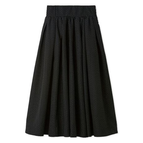 すっきりとしたウエストラインにふんだんにあしらったタック&ギャザーが、リュクスな印象を与えるフレアボリュームスカート。