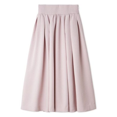 すっきりとしたウエストラインにふんだんにあしらったタック&ギャザーが、リュクスな印象を与えるフレアボリュームスカート。