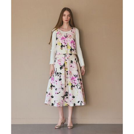 [型番:0226131013]【Japan Fabric】細番手の糸で織り上げた薄手で上質感のあるグログラン素材にオリジナルのダイナミックなハンドペントボタニカル柄をプリントした、上下単品としても着用できるセパレートデザインのドレス。※こちらのモデル着用画像はサンプル品を撮影しております。実際の商品と仕様、加工、サイズが若干異なる場合がございます。予めご了承くださいませ。