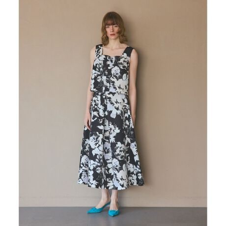 [型番:0226131013]【Japan Fabric】細番手の糸で織り上げた薄手で上質感のあるグログラン素材にオリジナルのダイナミックなハンドペントボタニカル柄をプリントした、上下単品としても着用できるセパレートデザインのドレス。※こちらのモデル着用画像はサンプル品を撮影しております。実際の商品と仕様、加工、サイズが若干異なる場合がございます。予めご了承くださいませ。