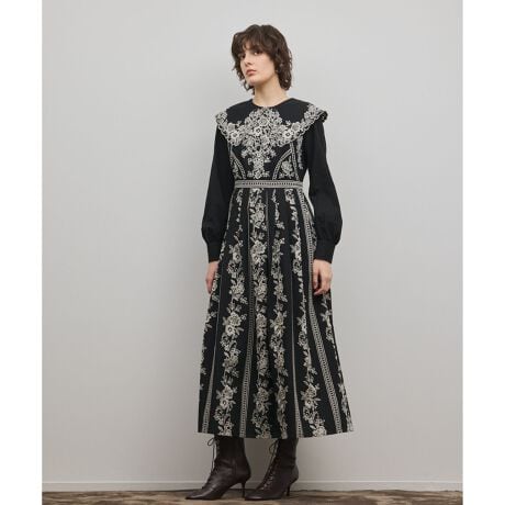 パターン刺繍ワンピース