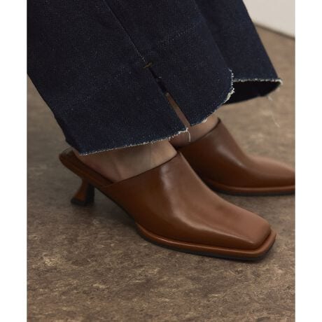 ソールにフチを取り付けた構築的な底周りがポイントの甲深ミュール。