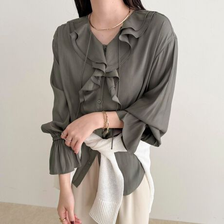 顔まわりを華やかに彩る、ボリュームフリルブラウス