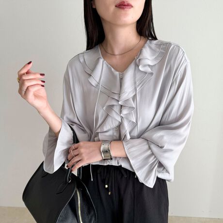 顔まわりを華やかに彩る、ボリュームフリルブラウス
