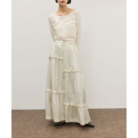 2段の切り替え上にはミニフリルを施しフェミニンな印象に。