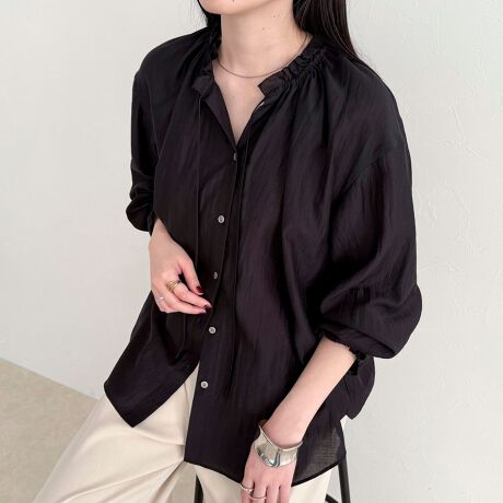 ・ほんのりとしたシャイニー感とシアー素材が軽やかで女性らしい印象を演出するブラウス