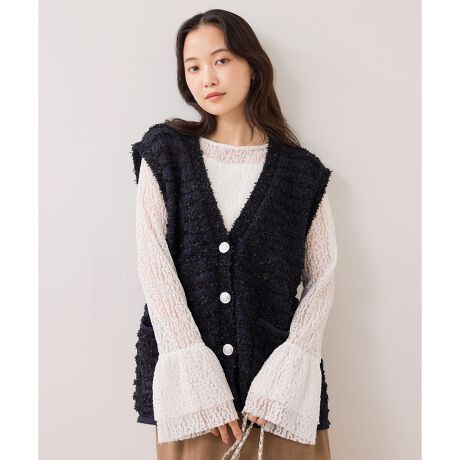 ・毛足のある糸を使用したオーバーサイズのニットベスト。