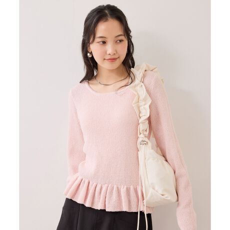 表面変化のあるスラブヤーンで少しカジュアル感のあるペプラムニットプルオーバーです。