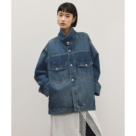 顔まわりが華やかなスタンドネックのデニムジャケット。