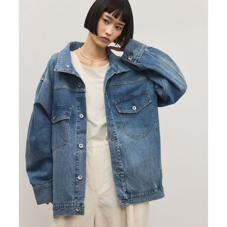 顔まわりが華やかなスタンドネックのデニムジャケット。