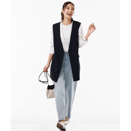 ■デザイン立体感のあるシルエットが今年らしいワイドデニム。ウエスト周りはすっきりさせつつ、サイドを緩やかにカーブさせているので、太ももやお尻周りをカバー。足首にかけてやや細くなっているのでダボダボする感じはなく、スニーカーでもヒールでも似合います。トレンドのクロップドトップスを合わせて、デニムのワイドシルエットを活かしたスタイリングがオススメです。