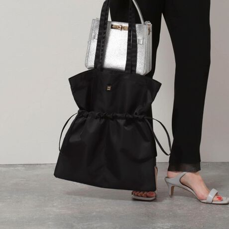 ・サイドを絞って巾着型にもなるので、容量によってバランスを調整して使えます。