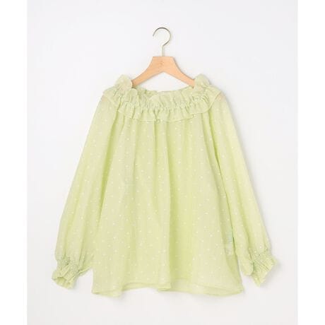 【スタッフコメント】▼身長158cm|着用サイズM (通常着用サイズM)ニュアンス感のあるドット柄と華やかな襟デザインが特別感のある1枚。デニムと合わせた大人カジュアルなスタイリングがおすすめです!