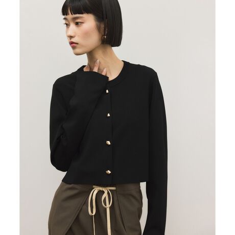 コンパクトなシルエットでどんなボトムにも合わせやすく、プルオーバーとしても着用可能なロングスリーブカーディガン。