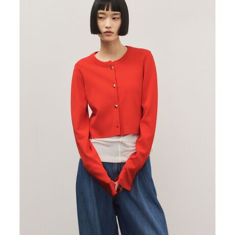 コンパクトなシルエットでどんなボトムにも合わせやすく、プルオーバーとしても着用可能なロングスリーブカーディガン。