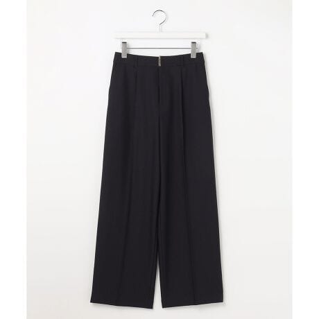 ・太すぎずきれいめに穿きやすいワイドストレート型パンツ・ほどよいハイウエスト感と、すっきり足長見えする美しいシルエットで、穿くだけでサマ見えが叶う一着・フロントタックがお腹周りに程よいゆとりをプラスし、センタープレスで足がまっすぐきれいに見えるデザイン・ほどよくゆとりがあり、穿きやすいのに足長&きれい見え・フロントのバーデザインがベルトなしでもポイントに・きれいな折山が長く続くクリース加工済み(前側のみ)・ウエストベルトは後ろゴム入りで伸縮性があり、楽な着心地