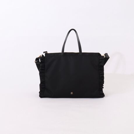 ・シンプルなナイロンバッグのサイドにフリルを配したトートバッグ。