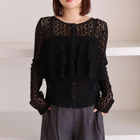 ・トレンド感のあるレースのカーディガンとフリルビスチェのsetアンサンブル