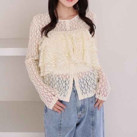 ・トレンド感のあるレースのカーディガンとフリルビスチェのsetアンサンブル