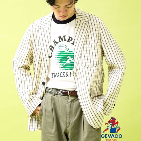 #GEVACO #ゲバコ #テーラードジャケット #ライトアウター #春アウター #裏なしジャケット #ワークテイスト #大人カジュアル #きれいめカジュアル #羽織り #チェックジャケット #ネイビージャケット #ユニセックス #FREDY&GLOSTER #26SS
