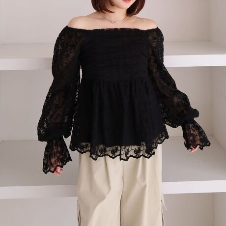 ・透け感のある刺繍レースの生地で甘すぎないデザイン
