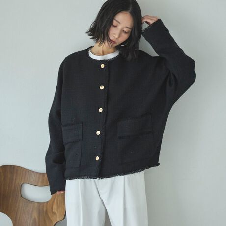 ・ヴィンテージ感のある金ボタンとフリンジが効いたデザイン