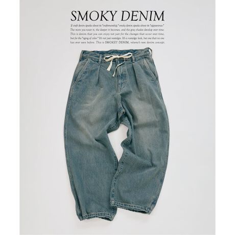 シリーズ共通の「スモーキーカラー」と「11oz(オンス)デニム」を使用し、ミリタリーのオーバーパンツからインスパイアされた、大胆なルーズシルエットにデニム素材で初登場。
